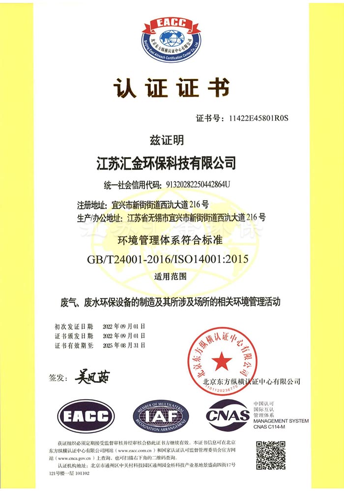 環(huán)境管理體系認(rèn)證證書